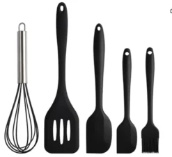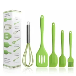 Facilite o preparo das suas receitas com o Conjunto de Utensílios de Cozinha em Silicone com 5 Peças, um kit completo que oferece durabilidade, resistência ao calor e total segurança alimentar.