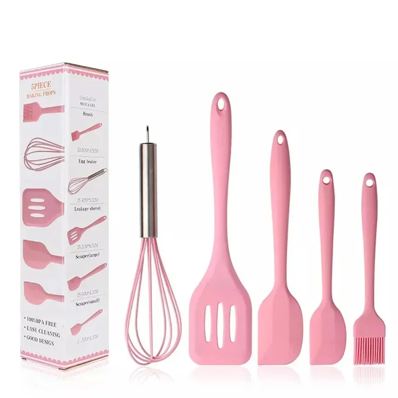 Conjunto de Utensílios de Cozinha em Silicone com 5 Peças – Resistência, Segurança e Praticidade no Dia a Dia